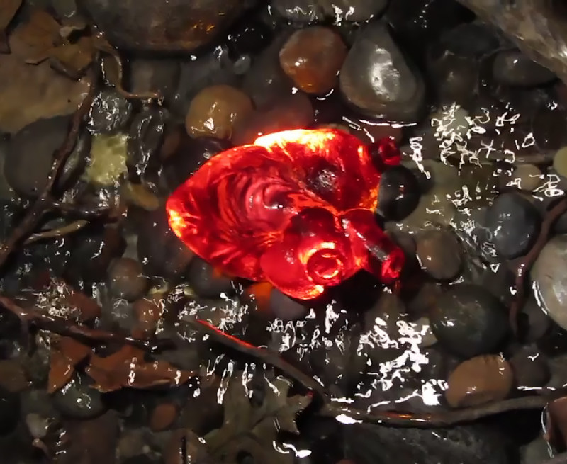 Bronze, aluminum, epoxy putty, wood, paint, cast glass, brick, water, pumps, light
