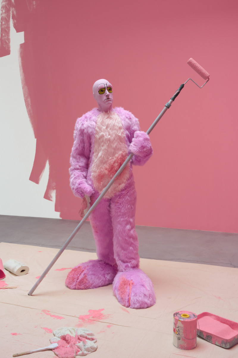 The Sailor, The Gardner, and The Mason (detail) 2025 Plywood, MDF, hardware, paint, resin, wool, hair, neoprene, clay, fur, pencil, glass, silicone 90 × 65⅝ × 34⅝ inches; 229 × 167 × 88 cm