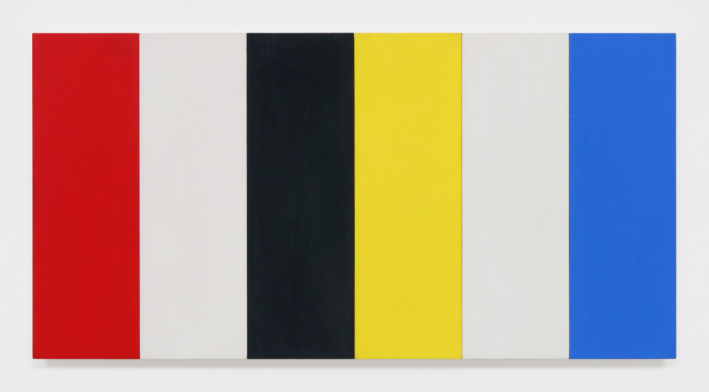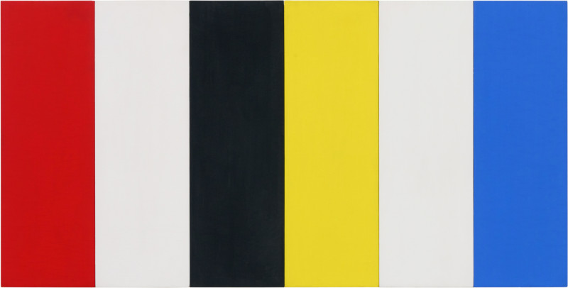Red Yellow Blue White and Black 1953 Oil on wood, six joined panels 19¾ × 39 inches; 50 × 99 cm