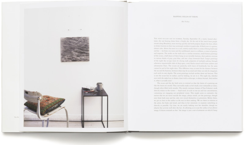 This catalogue is published on the occasion of Vija Celmins’s first exhibition of new work in seven years, featuring paintings, works on paper, and sculptures of the subjects. Along with her renderings of the ocean’s surface and the night sky, it includes sculptures in which a found object, such as a chalkboard or a small stone, is paired with a meticulously painted bronze depiction of itself.